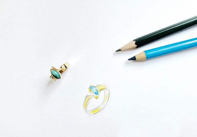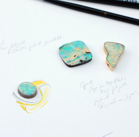 Wenn Sie einen Ort suchen, an dem Sie ein individuelles Opal-Schmuckstück in Auftrag geben möchten, oder sich wünschen Ihren losen Opal in ein neues Schmuckstück verarbeiten zu lassen, freuen wir uns darauf, für Sie kreativ zu werden. Im persönlichen Gespräch entwickeln wir - passend zu diesem wundervollen Edelstein - eine ganz individuelle Formensprache, die wir in einer Skizze für Sie umsetzen.