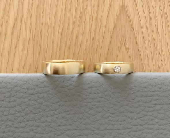 Aus zwei Paar alten Trauringen wurden diese neuen, schlichten Eheringe - die original Ringschienen sind komplett verarbeitet.