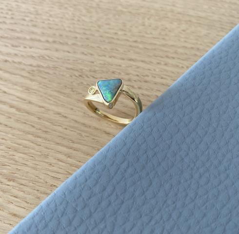 Unsere Kundin war zuerst von diesem Boulder Opal begeistert - Stephanie Telgmann entwarf ihr passend für ihre Hand den Opalring "Wunder".