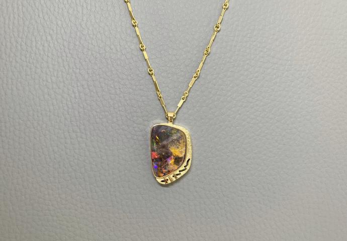 Jedes Farbspiel ist eine flüchtige Momentaufnahme aus einer sich vielfach ändernden Palette glühender Farbtöne. Der Opal ist der einzige Edelstein, der die gesamte Fabenvielfalt wieder spiegelt. Für die Römer war der Opal der kostbarste aller Edelsteine, denn sie glaubten, er vereinigt die Schönheit von allen bekannten Edelsteine. Jeder Opal ist einzigartig - ein Wunder der Natur.